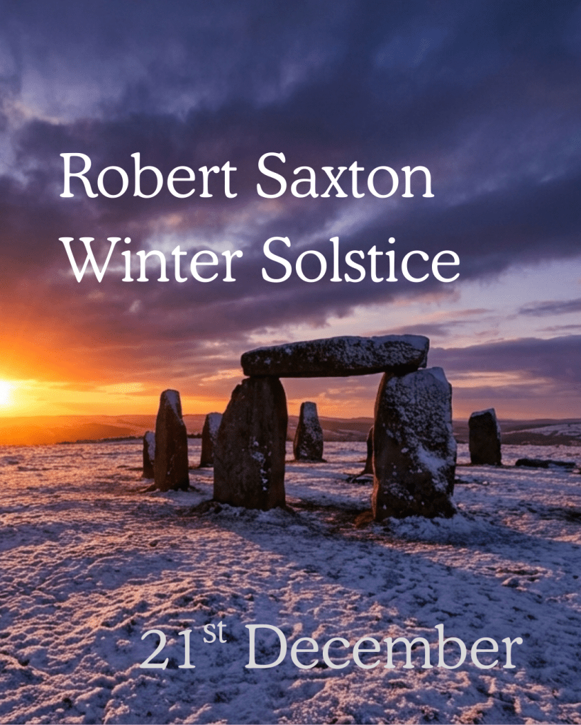 Robert Saxton’s Winter Solstice is out on Sunday, the next single from ‘The Reckoning of Time’. The music proportionally reflects the short day in contrast to the long night (light and dark).